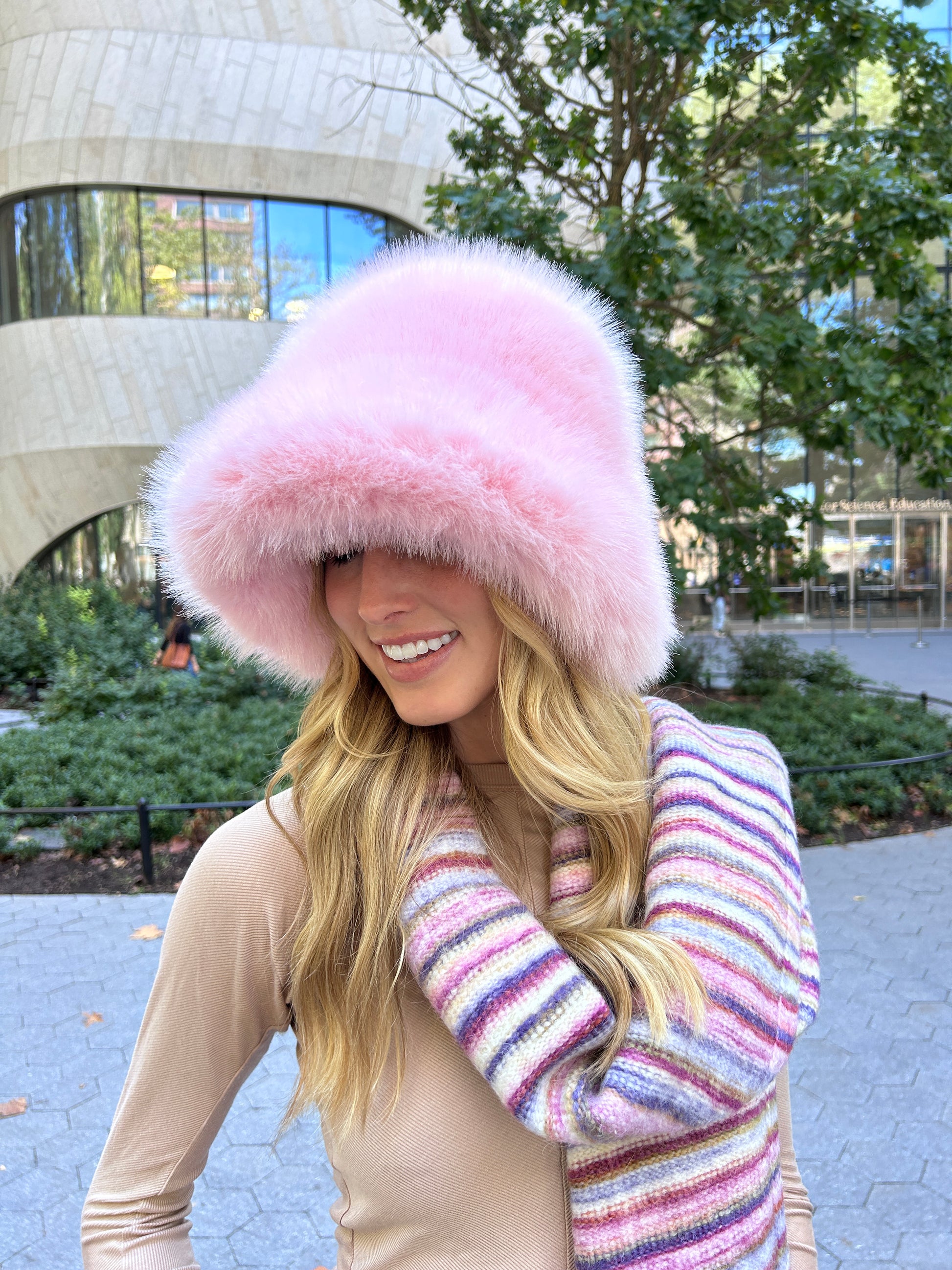 Our signature faux fur bucket hat is back and will keep you so warm and toasty + turn all heads! It's one of our best HATS and will become your new faux fur favorite!