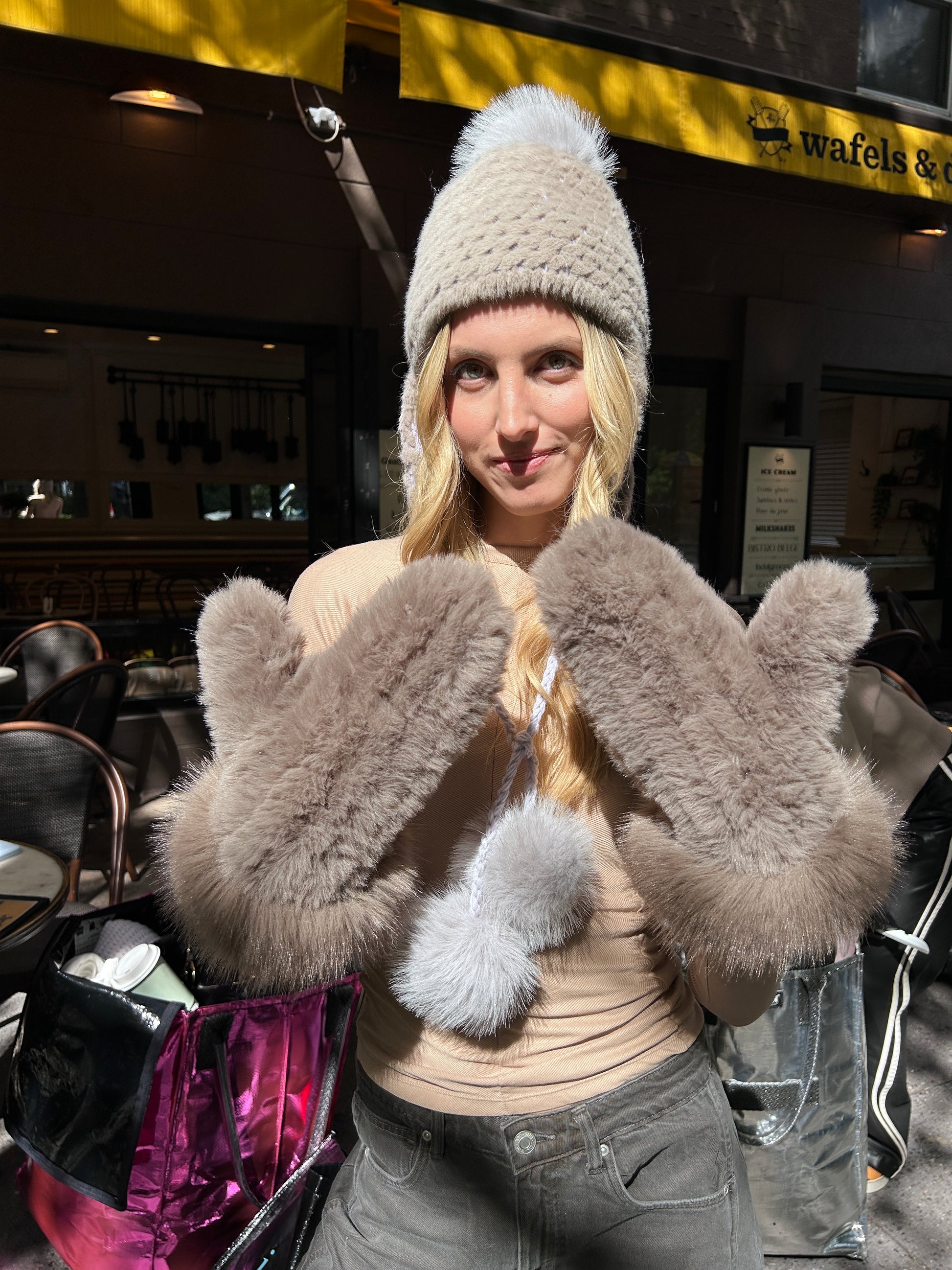 Oversized Fuzzy Faux Knit Mittens. One of our warmest and coziest. Also available in black and light grey.