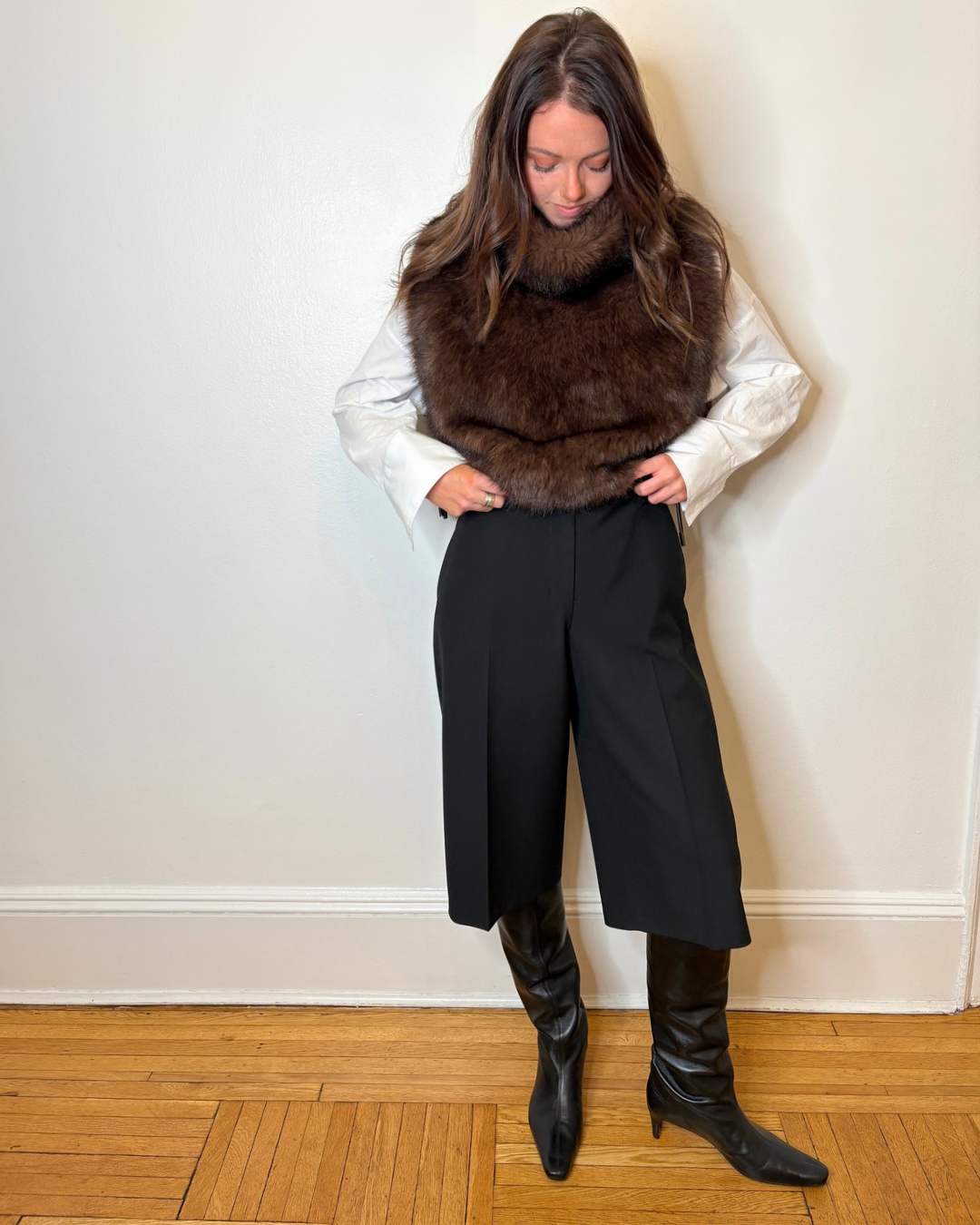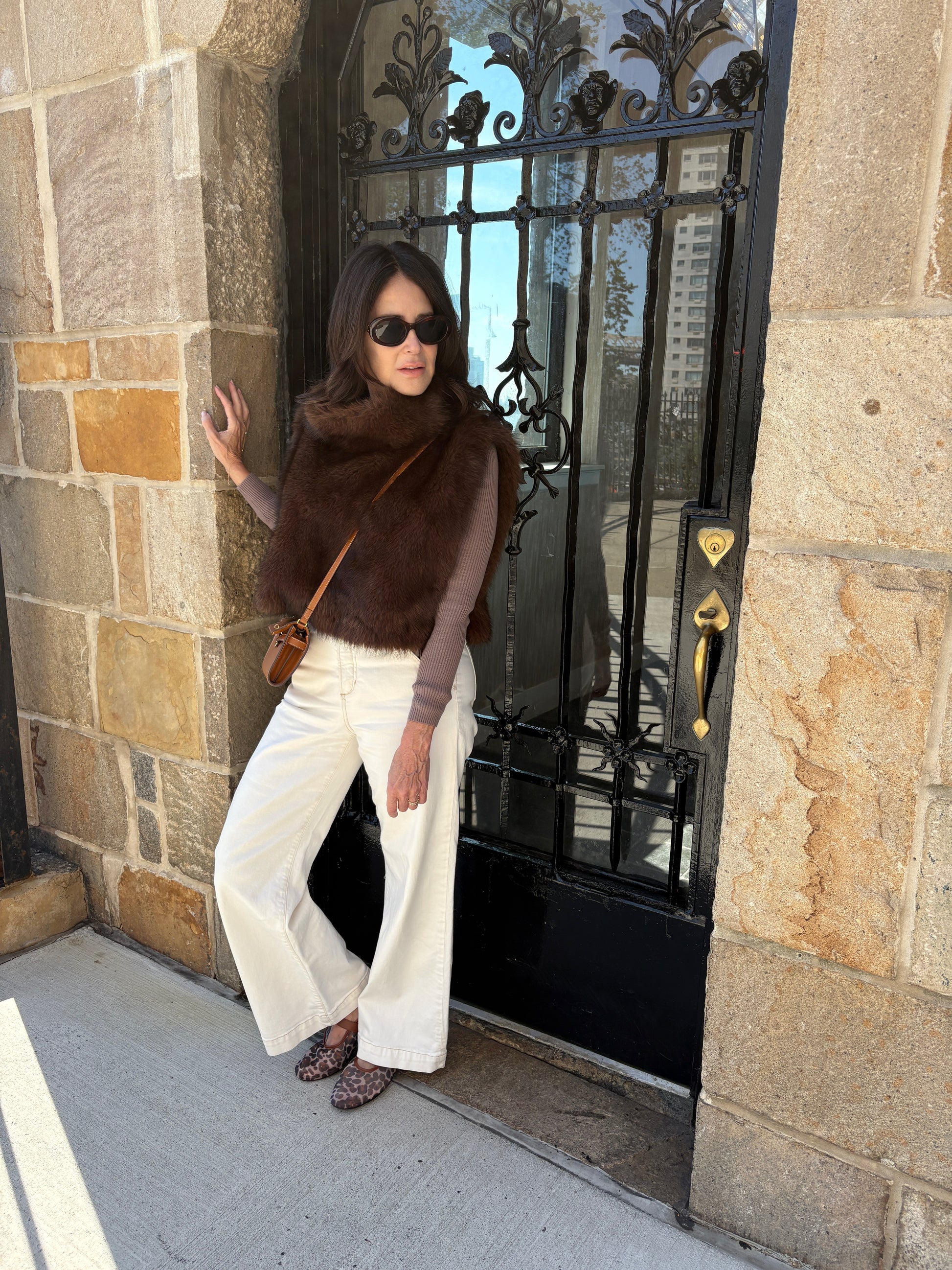 Brand new faux fur vest with side ties. Available in two color ways this is such a essential piece for right now.